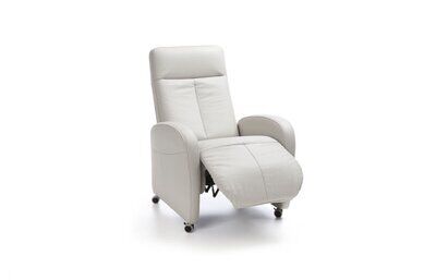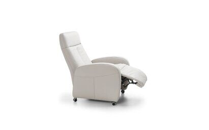 Fotel z funkcją relax Tom to model z grupy SMART. To komfortowy mebel wypoczynkowy z funkcją relaksu rozkładaną manualnie. Ma ruchomy zagłówek, który pozwala na dopasowanie mebla do najwygodniejszej dla Ciebie pozycji ciała. Dodatkowo został wyposażony w kółka, które ułatwiają przesuwanie go w dowolne miejsce w pokoju.
