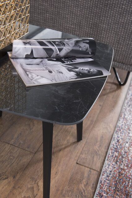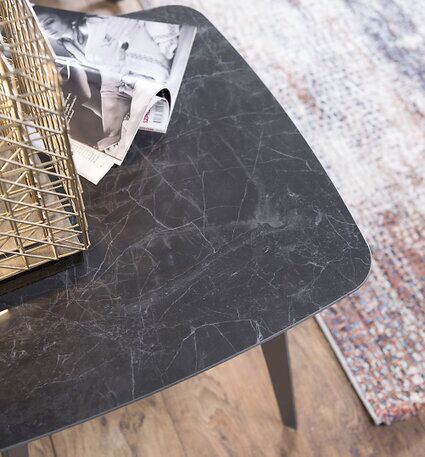 Materiały użyte do wykonania: Spiek kwarcowy + MDF, nóżki czarne metalowe