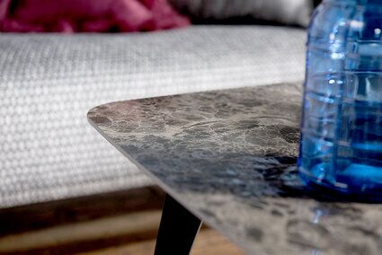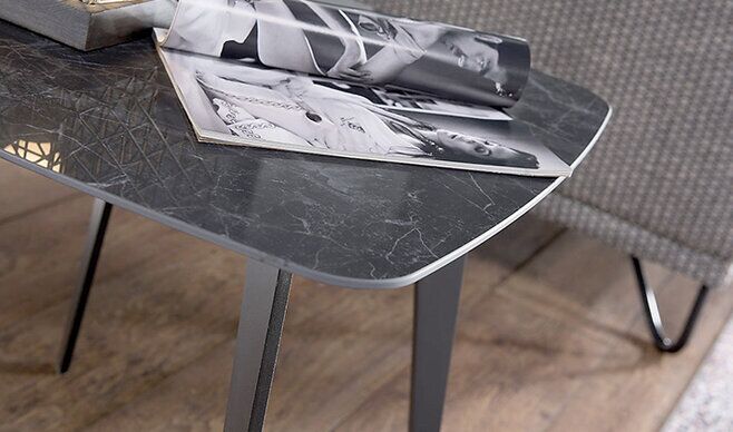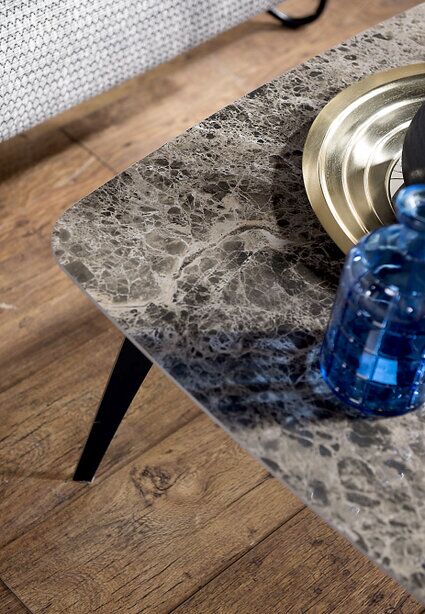 Blat ławy Quai wykonany został z włoskiego spieku kwarcowego oraz metalowych czarnych nóżek malowanych proszkowo w kolorze czarnym. Zaokrągleone boki w ławie nadają jej lekki oraz niepowtarzalny wygląd. Istnieje możliwość wyboru innego blatu oraz wymiaru ławy, nóżki mogą być wykonane w dowolnym kolorze z palety RAL.