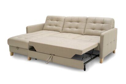W tym niewielkim narożniku, drzemie potęga lekkiej aranżacji pomieszczeń. Zbudowany w oparciu o funkcję spania i pojemnik na pościel mebel, tworzy klimat ascetycznej wielkości połączonej z elegancją linii i bogatych pikowań. Takie połączenie jest kwintesencją smaku i prostoty dla niedużych pomieszczeń.