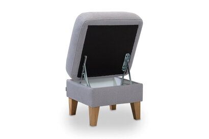 Pufa Arno na zgrabnych drewnianych nóżkach, idealnie uzupełni fotel Arno i sofę Arno. Wygląda zgrabnie i wdzięcznie, a dodatkowo zaskoczy poręcznym pojemnikiem na drobiazgi.
