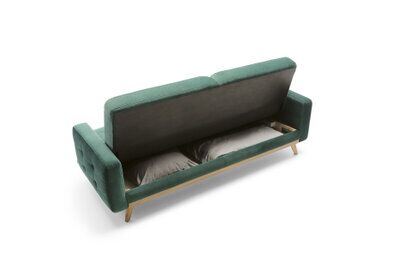 Sofa Nova to trzyosobowy, funkcjonalny model pasujący niemal do każdego wnętrza. Drewniana listwa na froncie mebla nadaje wyjątkowy charakter  oraz styl mebla. Natomiast pikowania na poduszkach oparciowych oraz boczkach dodają uroku i gracji. Nova wyposażona jest w funkcję spania. Sofę można rozłożyć w systemie Comfort System Technology. Dodatkowym atutem jest również bardzo przydatny pojemnik na pościel, który pomieści np. dodatkowe poduszki, kołdrę oraz koc. Komfort odpoczywania zapewnią nam szerokie poduszki siedziskowe, odpowiednio stabilne podłokietniki oraz bardzo wygodne oparcia. Mebel posiada wypełnienie z pianki wysokoplastycznej oraz sprężyn falistych, co zapewnia długi okres użytkowania oraz pozytywnie wpływa na komfort odpoczywania.