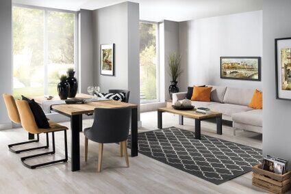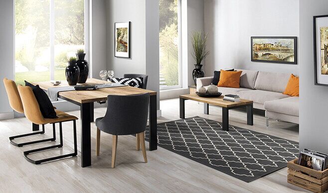Prezentujemy salon urządzony w klimacie Loft kolekcja mebli NESTO. W stylu loftowym do produkcji mebli wykorzystano przede wszystkim naturalnych materiałów takich jak stal, drewno czy beton a także szkło. Meble również na indywidualne zamówienie według sugestii klienta. Meble wykonane z litego drewna dębowego olejowanego w połączeniu z metalem. Podstawa malowana proszkowo na czarno.