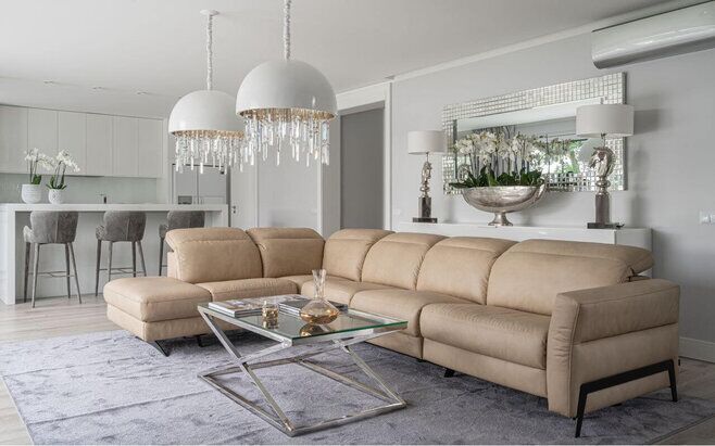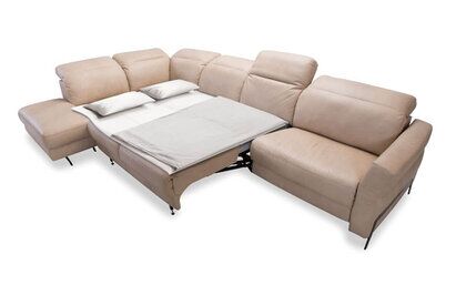 Najnowszy mebel modułowy z kolekcji Gala Collezione. Wyróżnia go lekka, przyjemna dla oka konstrukcja na czarnych, metalowych, eleganckich nogach. Dzięki trzem szerokościom siedziska możemy łatwo uzyskać preferowany przez klienta wymiar sofy lub narożnika. Do praktycznych zalet tego mebla należa także to, że w lekkiej bryle znajdziemy funkcję spania oraz rozkładane fotele TV. Mebel dostępny w szerokiej gamie obić od tkanin począwszy, po dedykowane dla Salonu Firmowego producenta skóry naturalne.